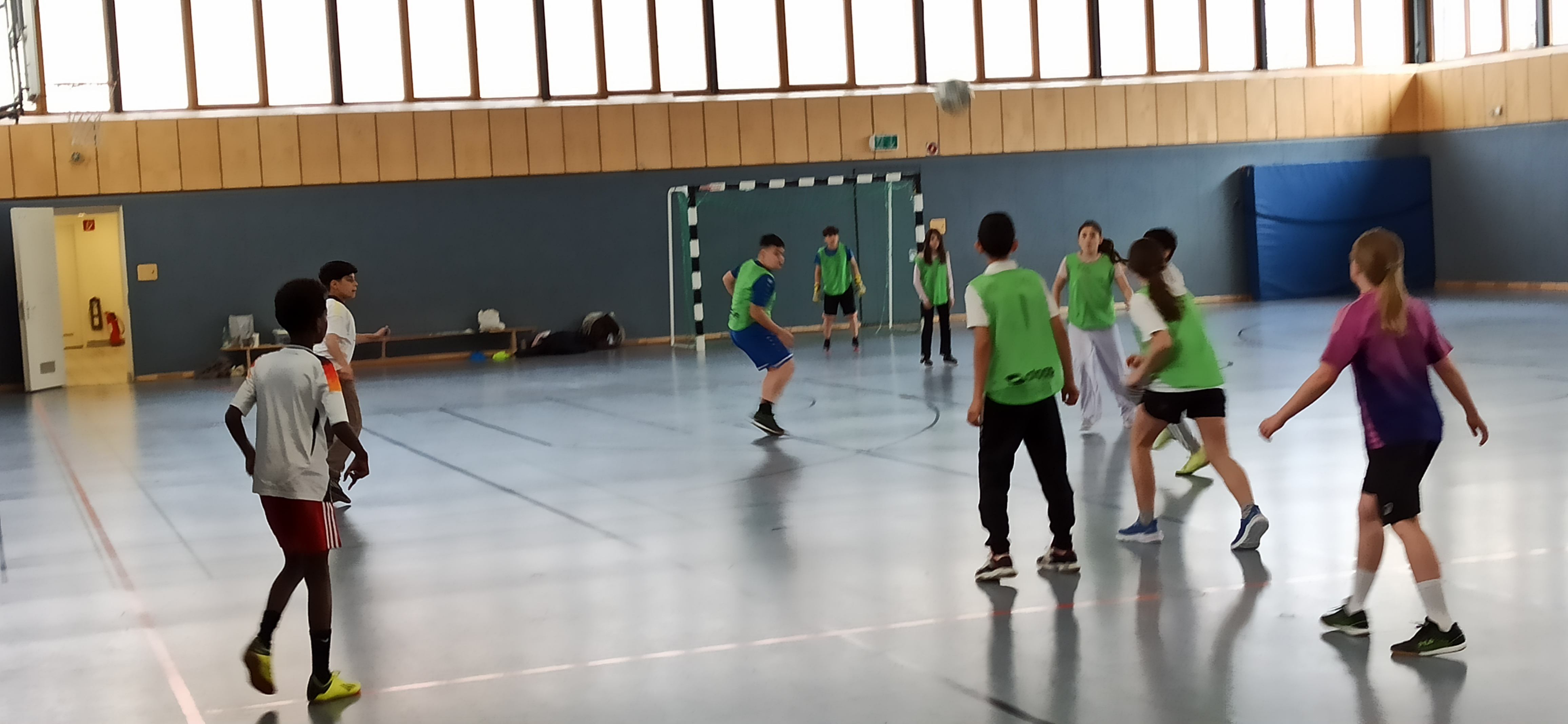 In der letzten Woche vor den Osterferien gab es noch ein Fußball-Turnier unserer 5.Klassen. Zwei Stunden Wettkampf-Spaß für alle - wer gerade nicht spielte, feuerte die eigene Klasse an. Die drei Klassen spielten jeweils 2x8 Minuten gegeneinander. Alle Kinder aus jeweils einer Klasse sollten pro Spiel mindestens einmal auf dem Spielfeld stehen. Eine Vorgabe war zusätzlich, dass immer vier Jungs und vier Mädchen im Einsatz sein mussten. Gecoacht wurden die Klassen von ihren Klassenleitungen, Herr Gawlina, Frau Goldberg und Herrn Schiebl. Die Spiele waren insgesamt ziemlich ausgeglichen, jede Klasse hätte an diesem Vormittag den ersten Platz verdient gehabt. Gewonnen wurde jeweils nur mit einem Tor Vorsprung. Doch am Ende hatte unsere Sportklasse (5bF) die Nase vorn. Sie gingen als stolze Sieger aus der Halle in der Frankfurter Straße. Auffällig war die Fairness, mit der sich die Klassen in dem Wettkampf begegnet sind. Organisiert wurde das Turnier von unserem Fußball-Spezialisten Herrn Gawlina.
