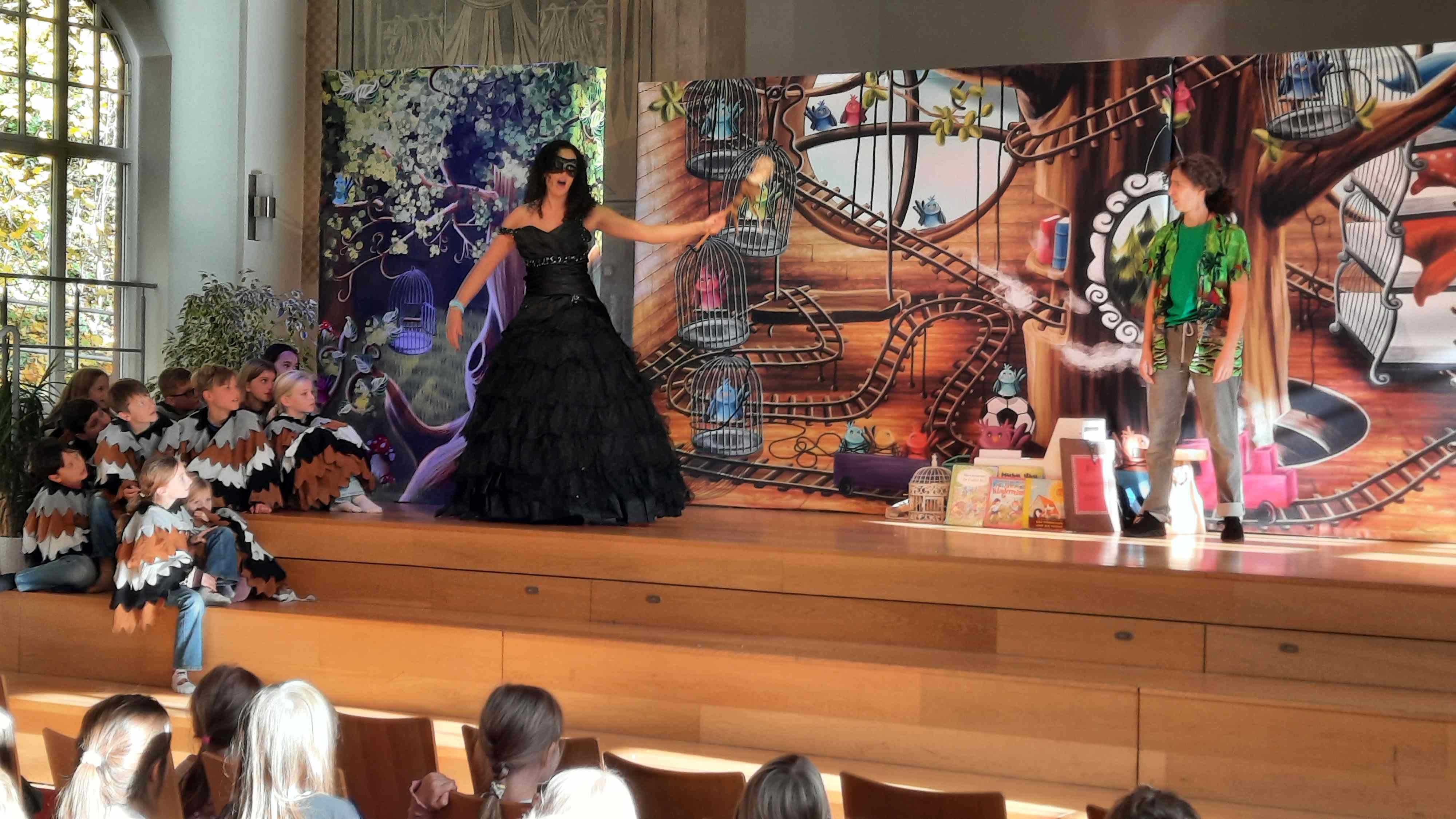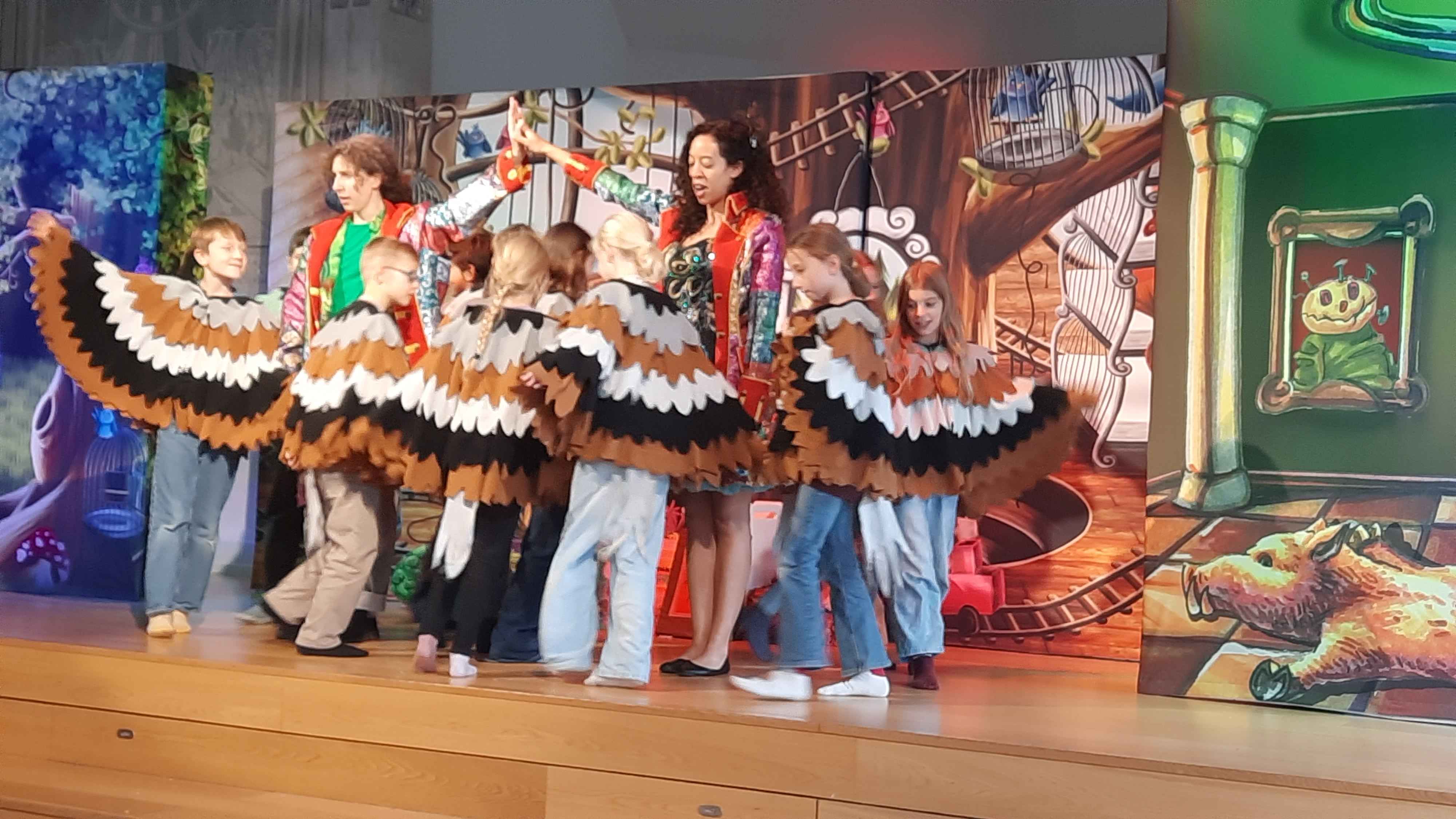 Am 30. Oktober 2025 war die Kinderoper Mannheim bei uns in der Emil-von-Behring-Schule. Das Stück hieß „Papageno und die Zauberflöte“. Sie hatten so coole Requisiten und das Bühnenbild war auch mega! Die Vierties haben die Papagenis gespielt. Die Schauspieler haben auch gesungen. Sogar alle Zuschauerkinder durften mitsingen. Die Schauspieler haben unglaublich schnell die Kostüme gewechselt und sind in sehr viele verschiedene Rollen geschlüpft. Mir hat das Stück gut gefallen!