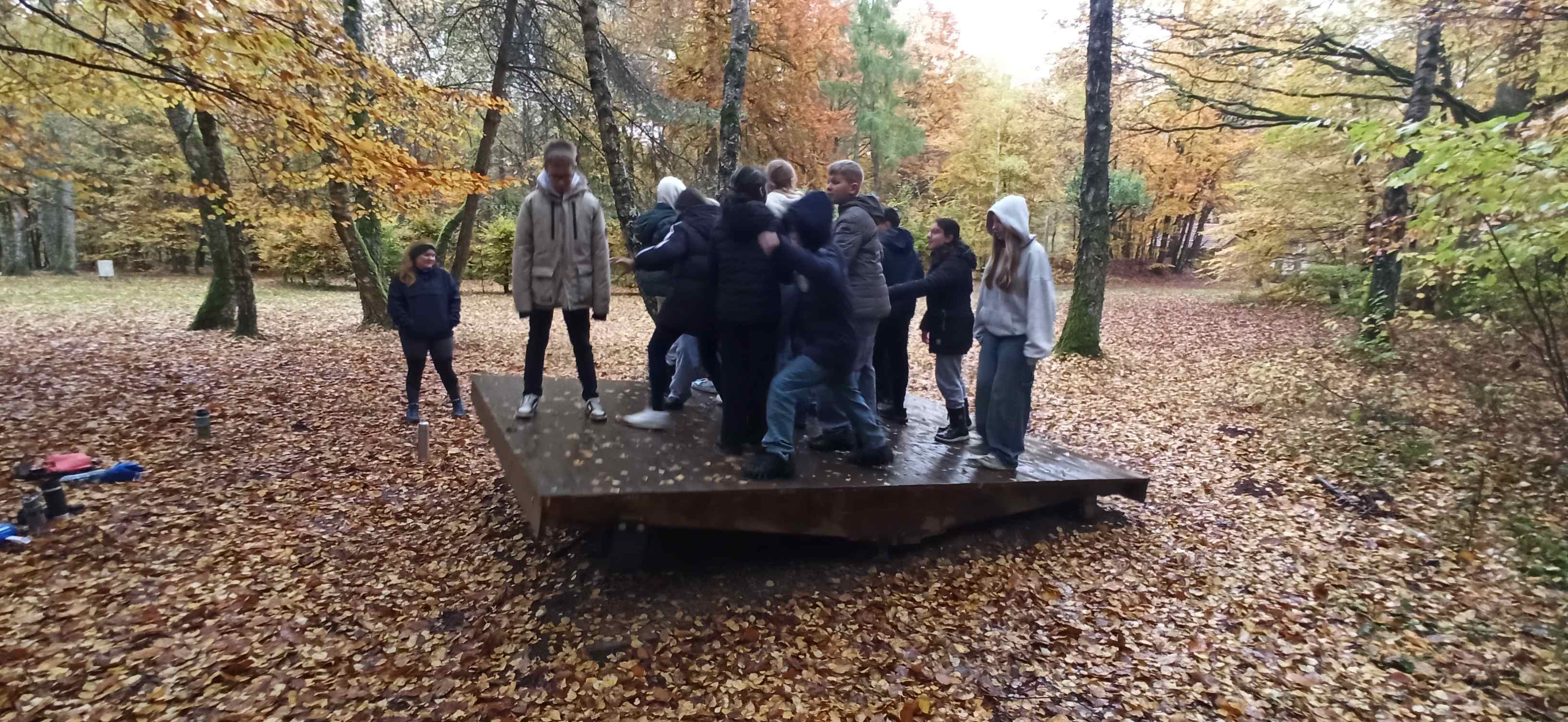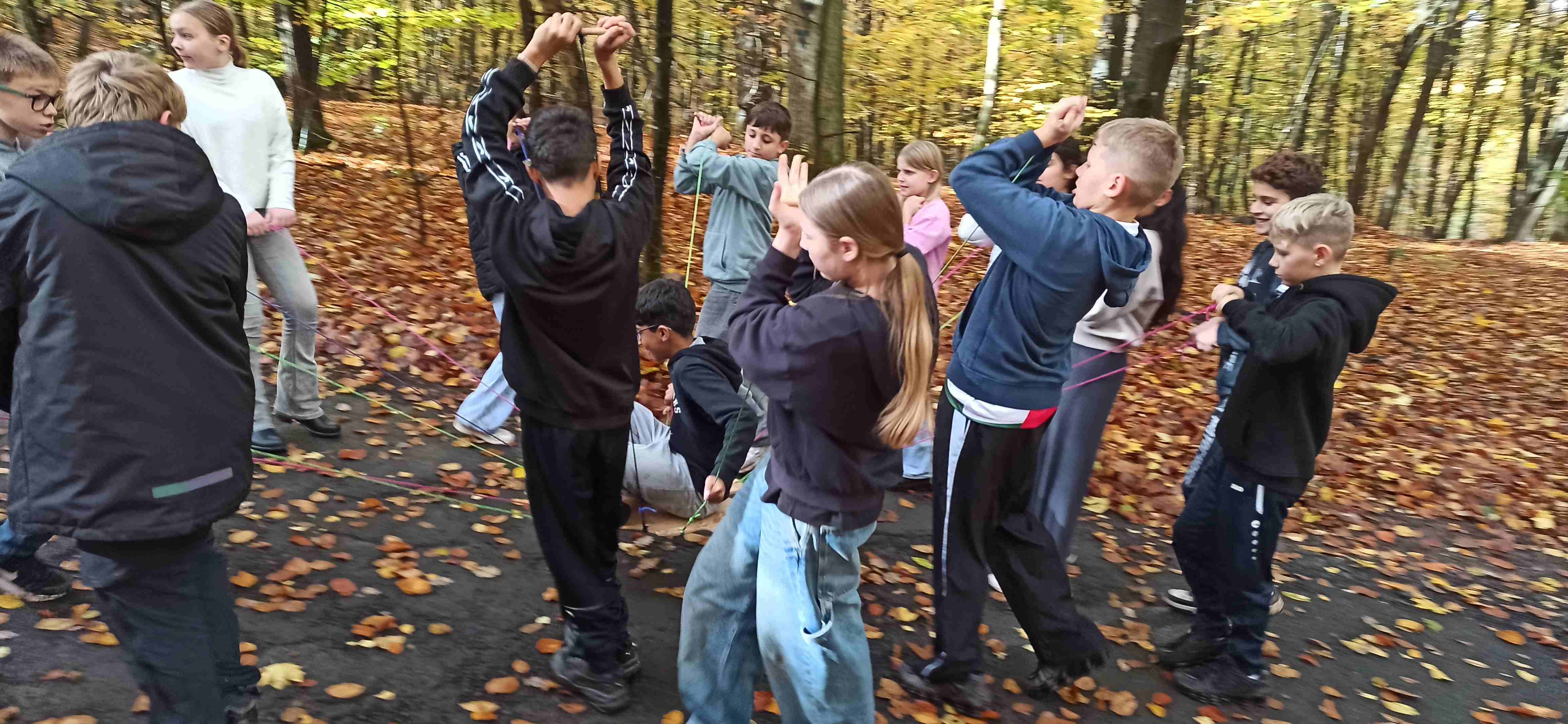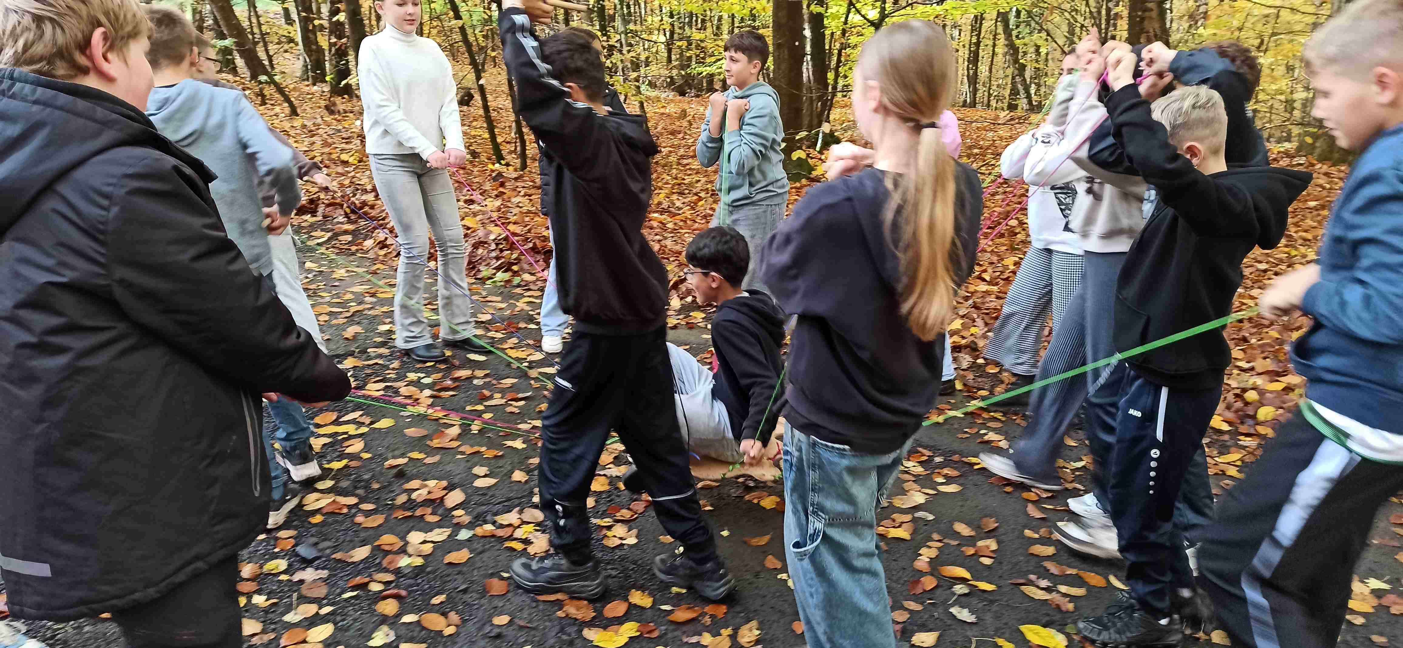 Klassenfindung 5c 002Alle unsere drei fünften Klassen waren in diesem Herbst bereits bei „Klassenfindungstagen“, die in Zusammenarbeit mit unserem sozialpädagogischen Kooperationspartner, der Jugendförderung der Stadt Marburg veranstaltet wurden. Drei Tage hatten die Klassen im Stadtwaldgelände jeweils Zeit, um an herausfordernden Spielen und Kooperationsaufgaben in ihrer Klassengemeinschaft zu wachsen. Besonderer Schwerpunkt wurde dabei auf das gemeinsame Lösen von Aufgaben gelegt. Die Schülerinnen und Schüler hatten dabei sichtlich Spaß, aber auch große Motivation.
