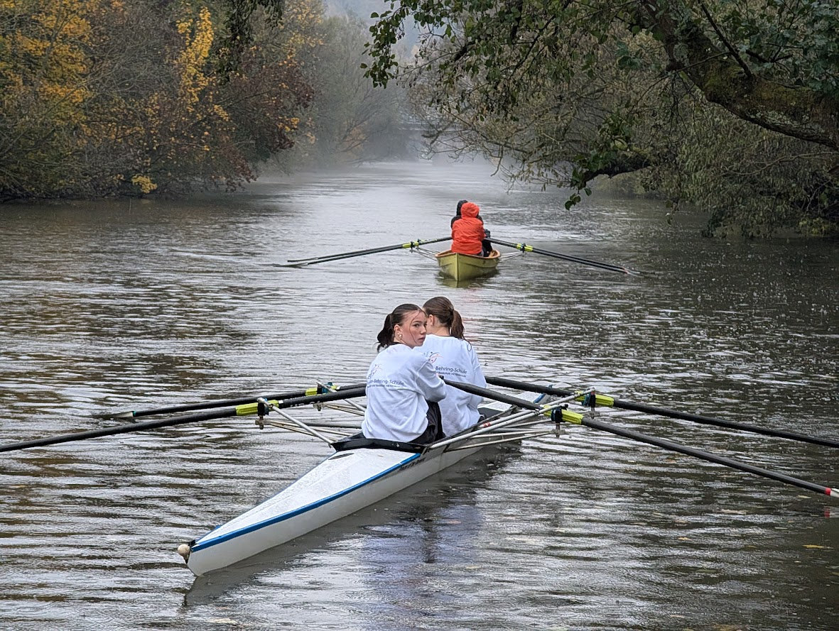 Nichtsdestotrotz waren auch wieder Ruderinnen und Ruderer der EvB beim Abrudern dabei und ließen sich vom ungemütlichen Wetter nicht abschrecken. Bei der langen Bootsparade, mit der die Rudersaison traditionell ihren Abschluss findet, war auch ein Boot der Ruder-AG der EvB vertreten und wurde beim Passieren des Bootsstegs unter lautem Applaus der Zuschauerinnen und Zuschauer begrüßt.