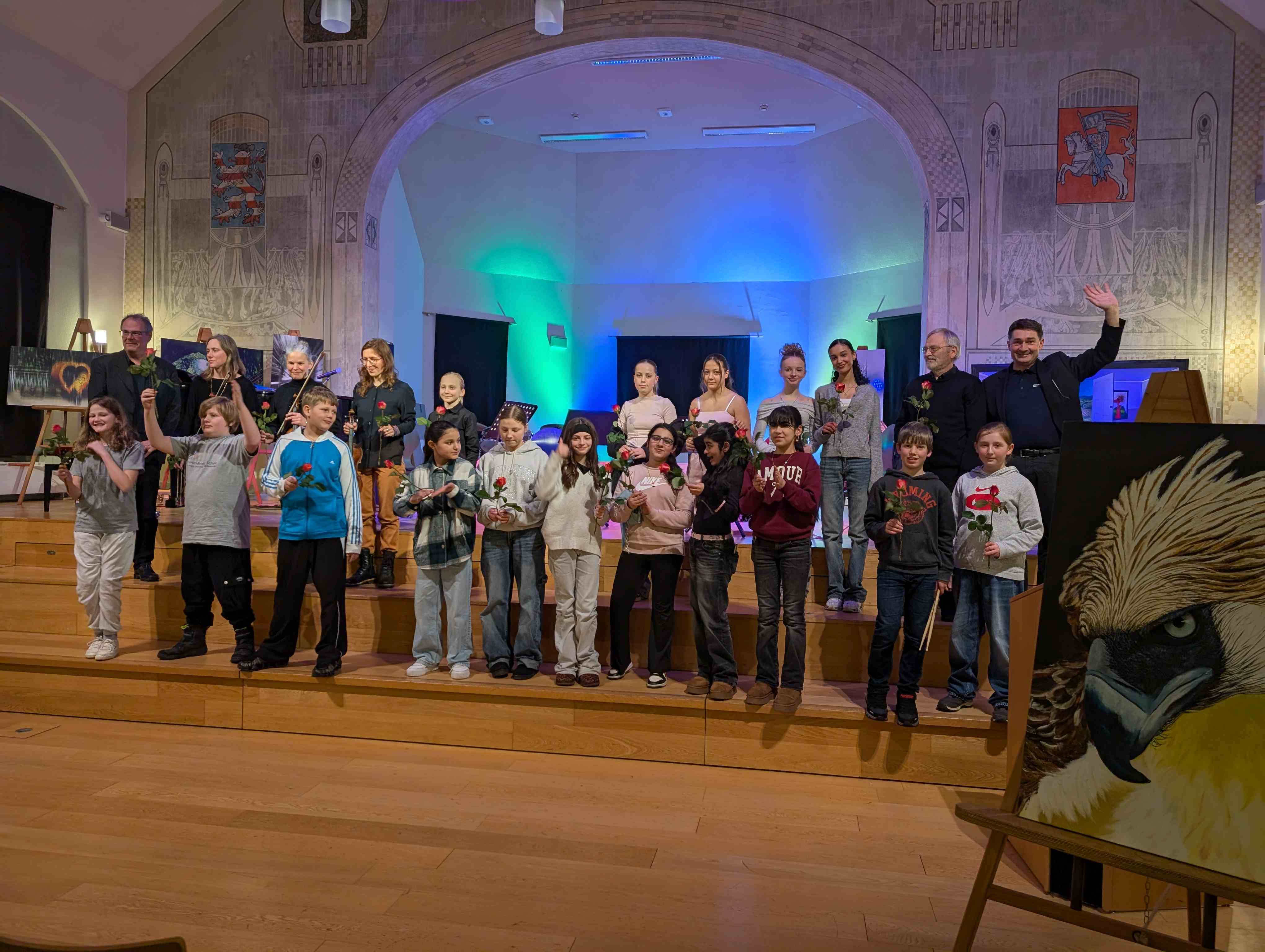 Das Konzerts war darüber hinaus auch als Finissage der Ausstellung „Visuelle Poesie“ mit Arbeiten von Inge Eisman-Nolte und Werner Eisman konzipiert. Zum letzten Mal wurden an diesem Abend die Arbeiten in der Schule gezeigt. Zur Erinnerung an die eindrucksvolle Ausstellung erwarb der Förderverein die Arbeit „Alles im Blick“ für die ständige Ausstellung im Foyer der Schule.