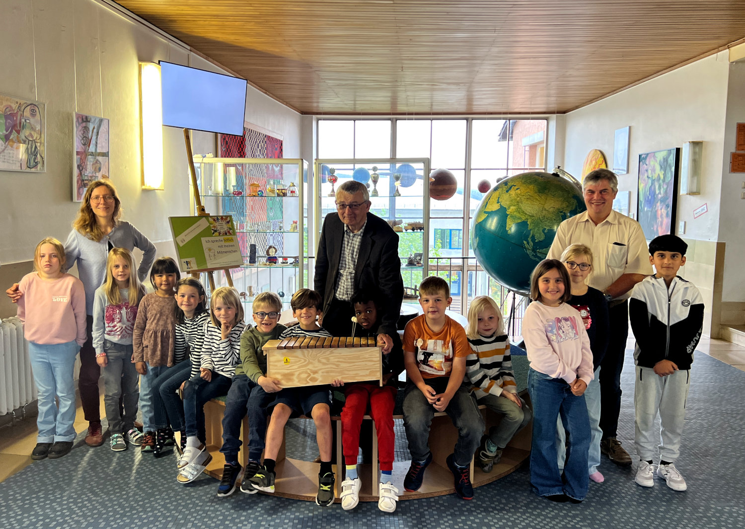 Rotary Club spendet der Grundschule der EvB ein neues großes Xylofon