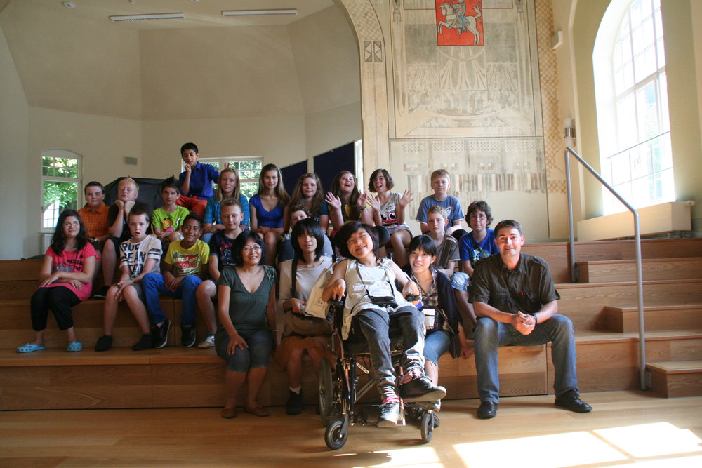 Die Schülerinnen und Schüler der EvB zeigten sich sehr aufgeschlossen und halfen, wo es ging, um den Rollstuhl auf dem steilen Gelände der Schule sicher zu bewegen. Die häufig von den Japanerinnen in der Cafeteria eingenommen Mahlzeiten gerieten schnell zu Autogrammstunden, besonders als es sich herumsprach, dass man dort seinen Namen in dekorative japanische Schriftzeichen übersetzt bekam.