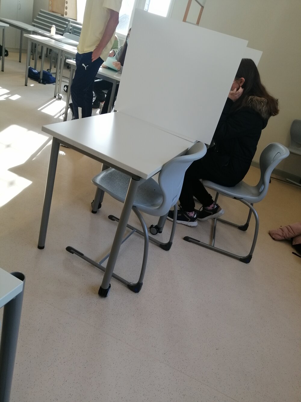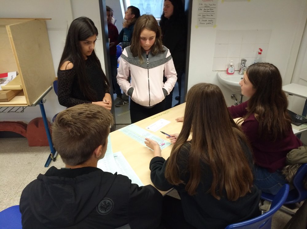 Bei der ersten wählenden Klasse, die um kurz nach acht anfing, gab es noch ein paar Fehler verglichen zur „richtigen“ Wahl. Es wurde wenig auf Ruhe und Ordnung geachtet. Als die Schüler*innen der Klasse gewählt haben, gab es eine kleine „Feedback-Runde“ und bei der zweiten wählenden Klasse lief es wesentlich besser. Alle wussten jetzt besser, was zu tun war, somit war es leiser und organisierter.