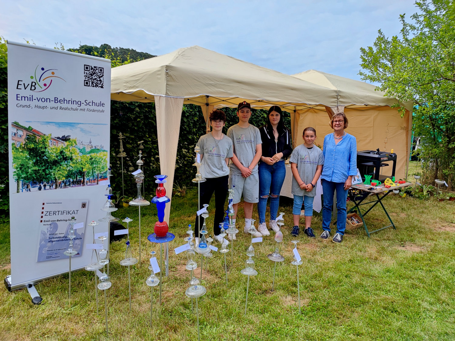 Die Schülerinnen und Schüler der EvB nutzten das schöne Wettern, um Gegenstände, die in den WP-Unterrichten hergestellt wurden beim WerkArt-Markt in Goßffelden anzubieten.