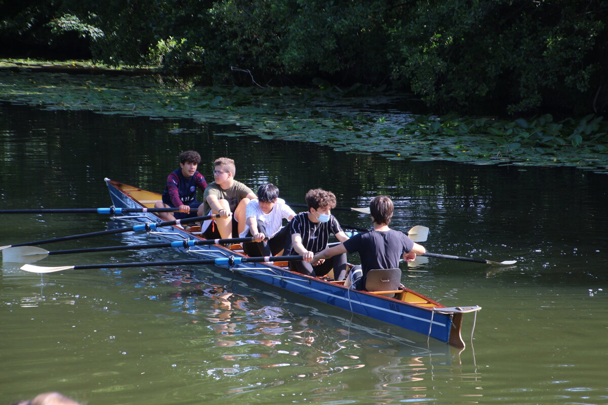 Nichtsdestotrotz waren auch wieder Ruderinnen und Ruderer der EvB beim Abrudern dabei und ließen sich vom ungemütlichen Wetter nicht abschrecken. Bei der langen Bootsparade, mit der die Rudersaison traditionell ihren Abschluss findet, war auch ein Boot der Ruder-AG der EvB vertreten und wurde beim Passieren des Bootsstegs unter lautem Applaus der Zuschauerinnen und Zuschauer begrüßt.