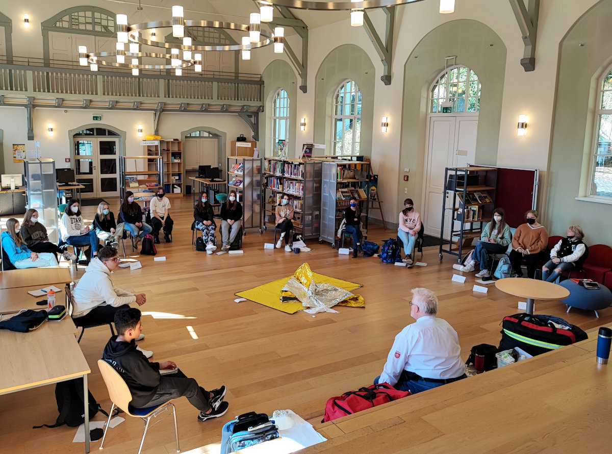 Während Marburg unter schönster Herbstsonne den Elisabethmarkt feiert, treffen sich die die Schülerinnen und Schüler des Schulsanitätsdienst um an einer den ganzen Sonntag dauernden Aus- und Weiterbildung teilzunehmen. Bereits viele Jahre bildet der von Stefan Rautenberg initiierte und geleitete Dienst einen verlässlichen Service um den kleineren und größeren Verletzungen und Unfällen im Schulaltag professionell zu begegnen. Neben der konkreten Hilfe im Falle eines Malheurs ist für die Mitglieder des Schulsanitätsdienst auch das soziale Lernen und der Dienst an der Gemeinschaft ein wichtiger Motivationsgrund.
