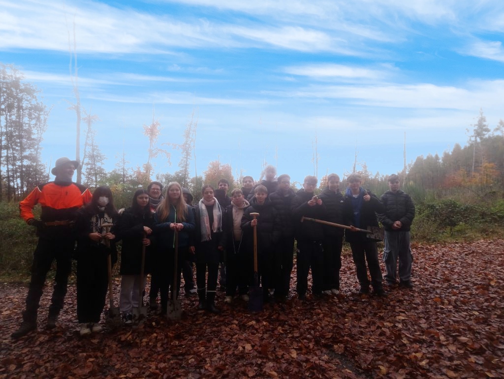 Am 13.11.2024 fand die Baumpflanzaktion unserer Klasse statt, die im Rahmen einer Kooperation mit dem Jugendwaldheim Roßberg und dem Forstamt Kirchhain (HessenForst) organisiert wurde.