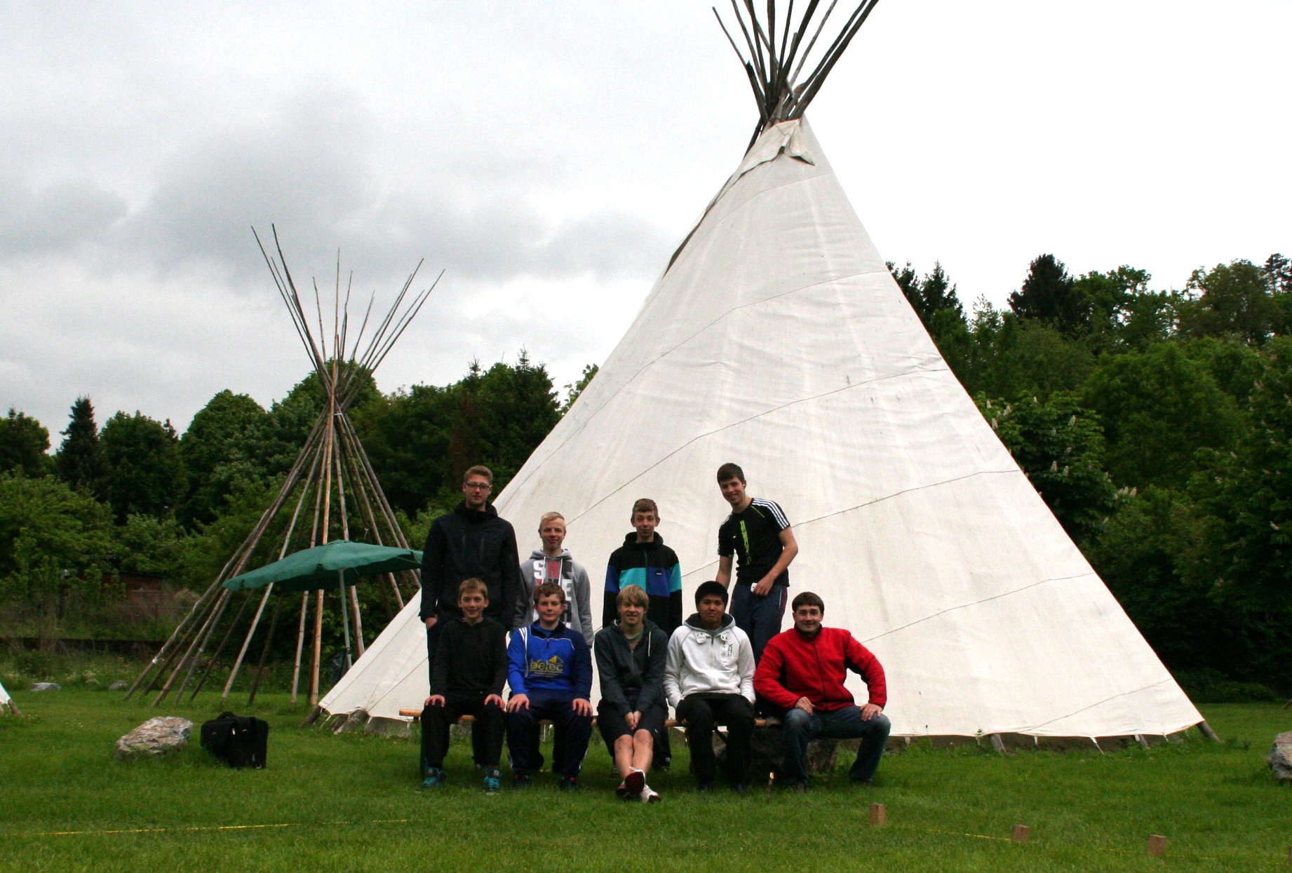 Da das Wetter wenig zum Monat Mai, sondern eher zum März passte, wurde in Runkel kurzerhand umdisponiert. Die Zelte blieben im Anhänger des Begleitfahrzeugs und das größte Indianertipi am Platz wurde bezogen. Im Zelt brannte die ganze Nacht ein gemütliches Feuer aus dicken Buchenscheiten und ließ die Außentemperaturen von nahe 0°C vergessen.