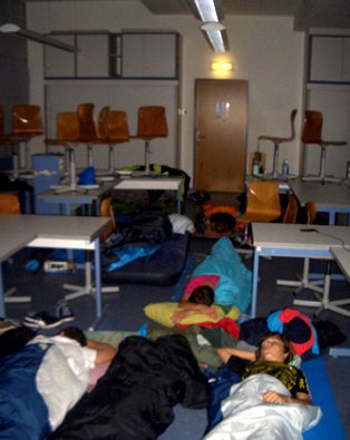 Um 19.30 brachten die Eltern ihre Kinder zurück in die EvB und das Nachtlager wurde im Physikraum aufgeschlagen.
