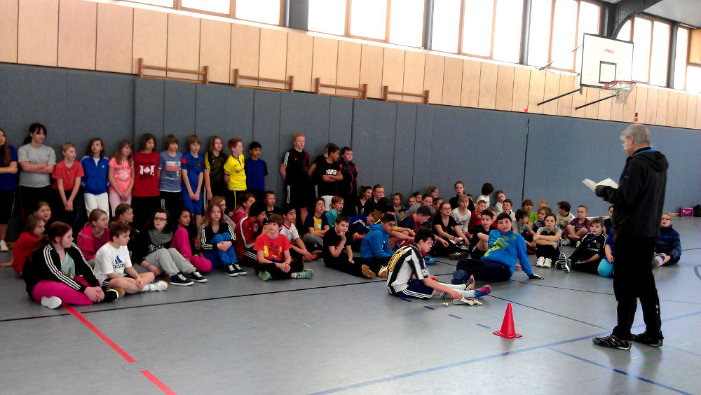Am 22.03.2013 fand das, von den Schülern so sehnsüchtig erwartete, Fußballturnier der Förderstufe in der Halle der ehemaligen Jägerkaserne statt. Der Meister der Klassen 5 die 5a, die sich für das heutige Turnier bereits im Herbst qualifiziert hatte, spielte mit den 3 sechser Klassen um die Meisterschaft. Zunächst mussten alle Klassen in den Geschicklichkeitsübungen Zielschießen und Zielpassen gegeneinander antreten. Hier nahmen alle Jungen und Mädchen teil. Der jeweilige Sieger startete mit 1:0 in die eigentlichen Spiele.