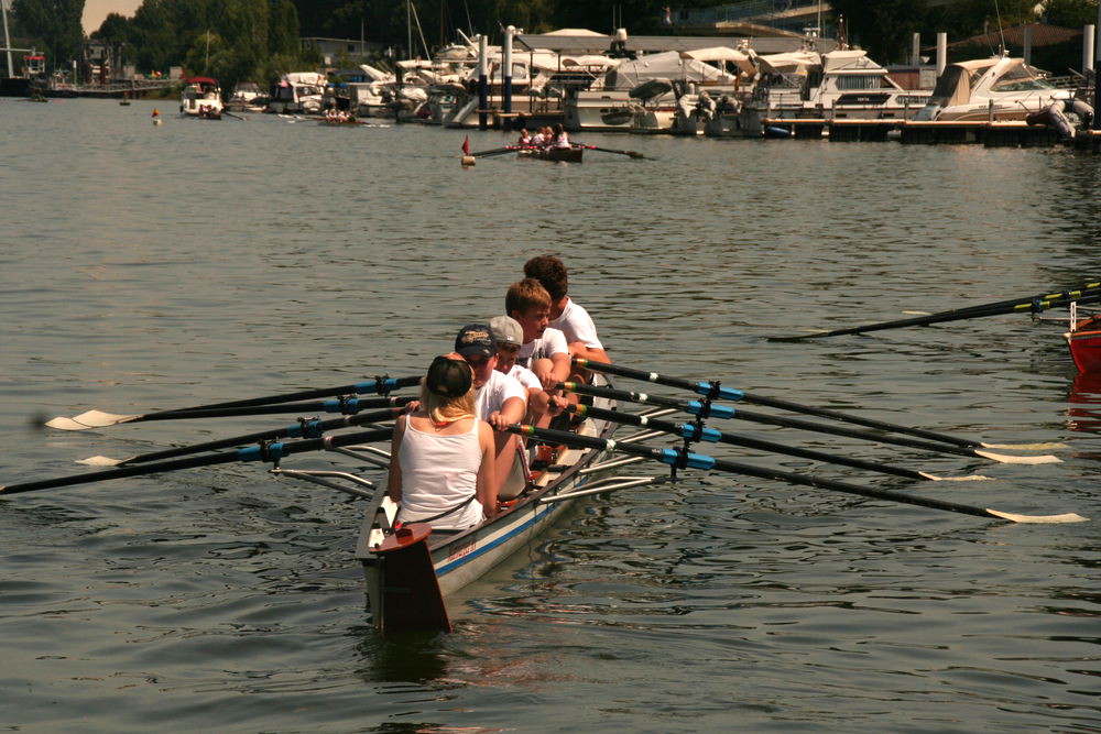 Highlight der erfolgreichen Rudersaison war aber sicherlich die Teilnahme beim 3tägigen Wettkampf „Jugend trainiert“, der dieses Jahr bei schönstem Sommerwetter in Wiesbaden ausgetragen wurde. 15 Schülerinnen und Schüler der EvB nahmen an dem Wettkampf teil und konnten in zwei Wettbewerben jeweils eine Bronzemedaillie erringen.