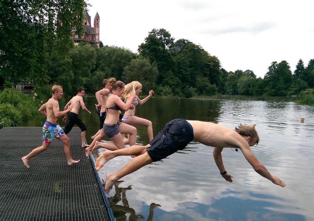 Neben den wöchentlichen Ruderkursen wurde auch eine 5tägige Wanderruderfahrt auf der Lahn angeboten, bei der 13 Schülerinnen und Schüler vom 7. - 10. Schuljahr teilnahmen.