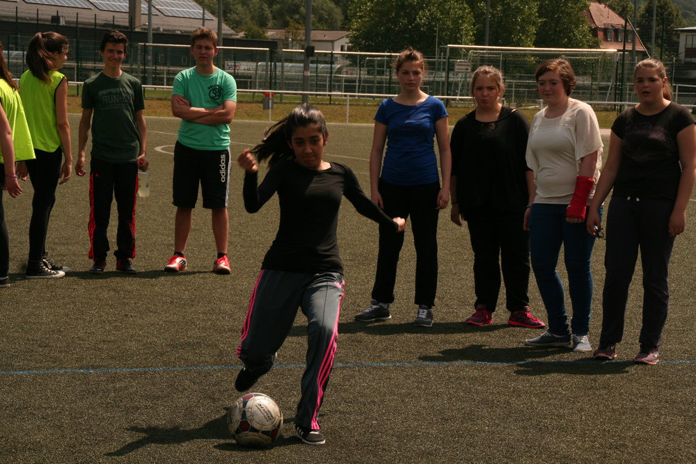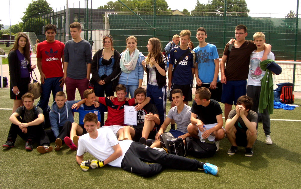 Am 12.06.20014 fand das Abschlussturnier der Unterstufe statt. Der Sieger des 6er Jahrgangs 6a und unsere 3 Siebener-Klassen kämpften mit großem Einsatz und optimaler Unterstützung durch Klassenlehrerin und Klassenlehrer bei schönem Wetter um den Titel „ Unterstufenmeister“. In einer Mannschaft spielten jeweils 5 Jungen und mindestens 3 Mädchen. Es entwickelten sich, wie immer, hochinteressante Spiele, bei denen auch die Favoriten hart kämpfen mussten. Denoch machten die beiden Favoriten 7a und 7b die Meisterschaft unter sich aus, obwohl die 7b beinahe gegen die 7c gestolpert wäre und lediglich durch ein Glückstor 1:O gewann.