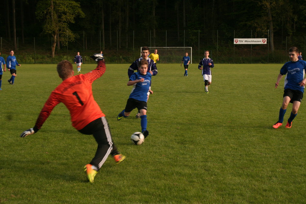 Am 12.05.2014 fuhr unser Team 1999 stark ersatzgeschwächt in den Nordkreis, um in Münchhausen gegen die C-Jugend des JSG Burgwald zu spielen. Obwohl unser komplettes und eingespieltes Mittelfeld fehlte, fanden unsere Jungs nach anfänglichem vorsichtigem Abtasten schnell zu ihrem Spiel und dominierten die erste Halbzeit. Was sich auch in einer klaren 4:0 Halbzeitführung wiederspiegelte.